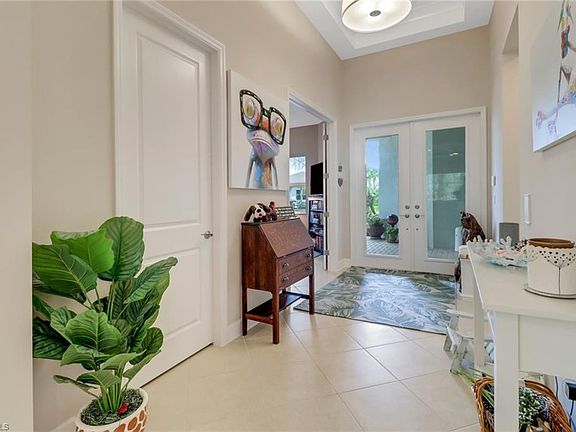 Come and see this striking, newly built Cabernet model in the heart of Valencia Bonita that masterfully blends luxury, smart design, and resort-style living. This exceptional residence offers 3 spacious bedrooms, 2 full baths, a versatile den, and an oversized walk-in pantry that will satisfy your storage dreams. Every detail has been carefully crafted for comfort and convenience: the 3-car garage is insulated and air conditioned, the entire home is safeguarded by a natural gas-powered Kohler 20 kW generator with full-home surge protection, and the driveway has been thoughtfully widened by four feet to ease guest parking. Inside, you’ll find custom ceiling fans, central vacuum, and a gorgeous dry bar perfect for entertaining. Step outside through sliding glass doors to a screened lanai that feels like a private oasis — complete with a built-in outdoor kitchen (rotisserie grill, refrigerator), and a heated saltwater pool that invites year-round enjoyment. Beyond the walls of this stunning home lies a community designed to elevate everyday living. Valencia Bonita, an exclusive 55+ gated enclave, is renowned for its 45,000 SF waterfront clubhouse and lifestyle complex, a full complement of resort-style amenities including a restaurant, spa, fitness center, billiards, arts & crafts studios, card rooms, and much more. You’ll also enjoy tennis and pickleball courts, bocce, walking & biking trails, and a full social calendar that makes it easy to stay active, connected, and engaged. Location is everything, and here you’re perfectly placed to soak in the best of Southwest Florida. Valencia Bonita sits between Naples and Fort Myers, just minutes from pristine Gulf Coast beaches, championship golf courses, fine dining, boutique shopping, and the entertainment hubs of both metro areas. Nature lovers will appreciate being close to Lovers Key State Park (just a short drive away), where you can explore barrier islands, paddle through mangroves, and observe abundant wildlife. Downtown Bonita Springs also offers charming streetscapes, Riverside Park, arts events, and a delightfully walkable atmosphere. In short, this home offers not just a home, but a lifestyle: premium craftsmanship, smart systems, private outdoor indulgence, and access to a vibrant, amenity-rich community — all in a desirable coastal locale. This is the SW Florida home you’ve been waiting for.