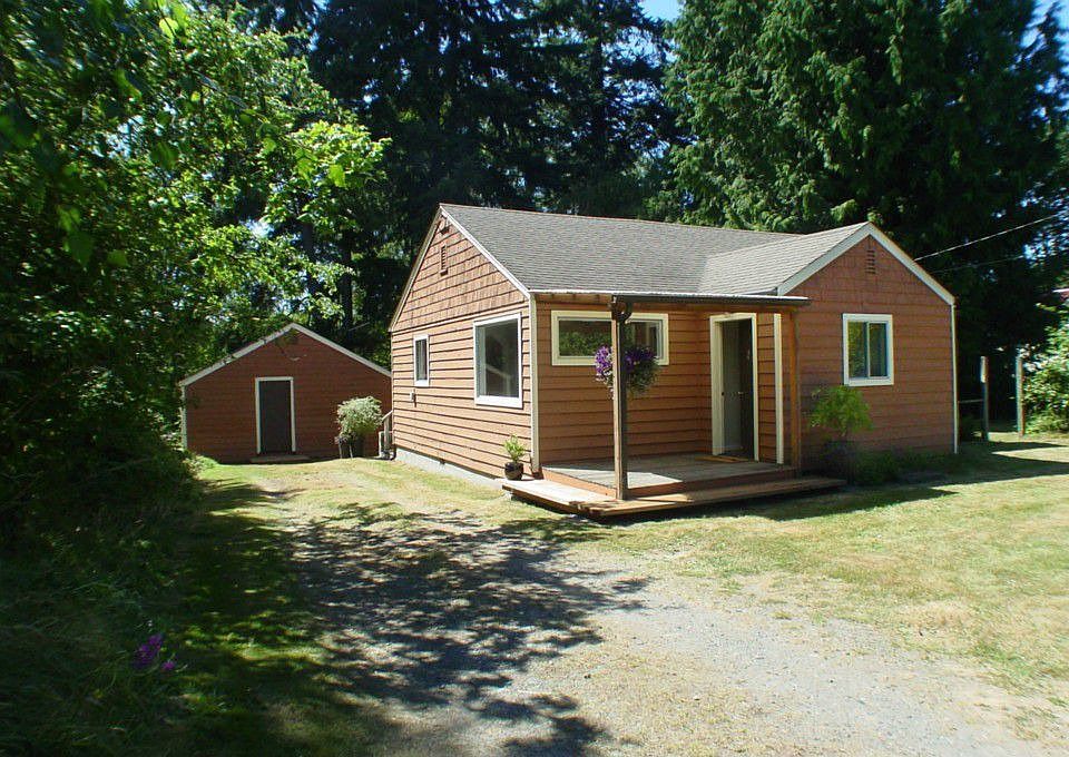 Island cottage blends vintage charm with a location that's the ultimate in convenience, just north of Vashon's town. A wood privacy fence provides peace & quiet, yet you can catch the bus practically from your front door! Shops & restaurants are nearby while you live amid sunshine & fruit trees. Light-filled windows, hardwood floors, cheerful kitchen, sunny deck, 2 bedrooms & laundry area make this just the right size. Large outbuilding. Perfect for down-sizing, first-time buyers or investors.