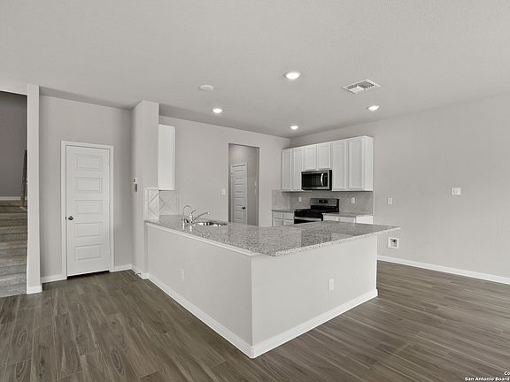 Love where you live in Hickory Ridge in Elmendorf, TX! The Lowry floor plan is a spacious 2-story home with 4 bedrooms, 2.5 baths, and 2-car garage. The first floor offers the perfect space for entertaining with a peninsula kitchen open to both the living and dining areas and vinyl plank flooring throughout the common areas! The gourmet kitchen is sure to please with 42" cabinetry, granite countertops, and stainless-steel appliances. Upstairs offers a private retreat for all bedrooms! Retreat to the Owner's Suite featuring granite countertops, a sizable shower, and a walk-in closet. Enjoy the great outdoors with a sprinkler system and a covered patio! Don't miss your opportunity to call Hickory Ridge home, schedule a visit today!