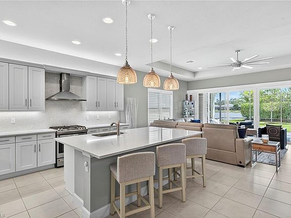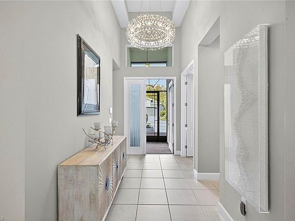 Lakefront Valencia Bonita Luxury Meets Corner-Lot Charm in this RIVIERA Model! This RIVIERA model on a coveted corner lot boasts lakefront views and an extended lanai perfect for outdoor entertaining. From the moment you enter through the screened front porch, you’ll appreciate the thoughtful design and abundance of storage – including three walk-in closets, two storage rooms, and overhead garage storage. The great room and office feature sound-reducing accent walls, while the extra-large laundry room offers built-in cabinets and an upgraded Maytag washer and dryer. Peace of mind comes standard with Storm Smart rear screens, impact-resistant windows and doors, and a portable generator – you’re fully protected even during storm season. The gourmet kitchen is a chef’s dream with upgraded cabinets featuring steel pull-outs, soft-close drawers, quartz countertops and backsplash, upgraded modern lighting, and high-end appliances including a microwave with air fryer and convection features. The dining area impresses with a picture-frame molding wall, and tray ceilings in the great room and primary suite elevate the home’s sense of space. A cohesive lighting upgrade flows throughout the home, enhancing its ambiance and highlighting architectural details. Wooden plantation shutters are present throughout, including on the rear sliders, provide both beauty and function. Thoughtful touches extend to dedicated outlets in hall closet and guest suite walk-in closet for crafting or robot vacuums. Valencia Bonita living is unparalleled: low HOA fees (Group bundled Xfinity cable and internet bpackage just added to save residents $), no CDD, natural gas, and a 45,000 sq. ft. Clubhouse + Lifestyle Complex surrounded by 10 acres of world-class amenities. Enjoy tennis, pickleball, bocce, lap/resistance/grandkids and resort-style pools, fitness center, indoor/outdoor dining and bars, over 25 social clubs, firepits, cabanas, full service spa and nail salon, and even a pottery studio. With clubs for every interest – from Adventure and Stitchers’ to Bourbon and Wine Connoisseurs – you choose how active and social you want to be. Full time Lifestyle Director on premises. TOP NOTCH fitness program at reasonable cost with classes for all ability levels! This home is more than a residence; it's community offers a coveted lifestyle. Move in and live the ultimate Florida dream. Just 20 minutes to the beach and less than 1/2 hr to RSW airport!