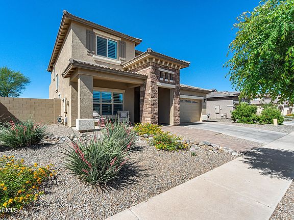 Absolutely gorgeous, former model home! Front door opens up to the light & bright open floor plan, boasting wood plank tile flooring, & neutral two tone paint. Beautiful chef's kitchen boasts white cabinetry, stainless steel appliances, granite countertops, modern subway tile backsplash, pendant lighting & a large kitchen island. Tons of custom upgrades throughout including plantation shutters, tile backsplashes in bathrooms, and premium carpeting! Spacious primary bedroom has private balcony access, large walk in closets & an incredible en suite bathroom showcasing dual sinks, private toilet room, a walk in shower & soaking tub embellished with stunning herringbone tiled accents. Backyard complete with built in BBQ, artifical turf, and plenty of space for a pool, if desired!