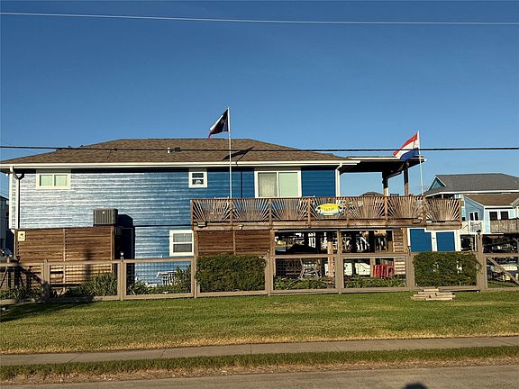 STUNNING waterfront home that showcases amazing sunset views!!! Nicely updated home in the perfect location... The home features a beautiful kitchen with stainless appliances, quartz countertops, coastal light, bright colors, and shaker style cabinetry. Durable waterproof laminate throughout. Unique coastal fixtures. Primary retreat features attached full bathroom, nice tile walk-in shower with multiple shower heads. Enjoy a famous Galveston sunset while relaxing on the wrap around deck. Ground level entertaining mecca offers multiple gathering spaces, boat house with lift, outdoor shower and bar, and a place to store your boat trailer. Adjacent lot available for sale as well.
