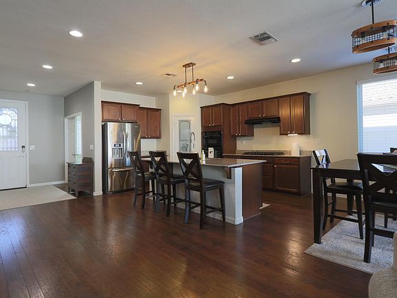 Price Reduction! Experience effortless elegance in this meticulously maintained home in the 55+ Woodbridge by Del Webb community. Enjoy a low-maintenance yard and covered patioperfect for morning coffee or evening gatherings. Inside, the open floor plan features a cozy gas fireplace, warm wood flooring, and newer carpet in the bedrooms. The chef's kitchen offers granite counters, a spacious island with bar seating, and a custom pantry door. The primary suite includes a walk-in closet, barn door, shiplap accent wall, and a spa-like bath with dual sinks and granite finishes. A second bedroom and den offer flexibility for guests, hobbies, or a home office. The laundry room includes cabinetry, and the garage adds storage. Upgrades include a tankless water heater and whole-home water softener. The private backyard features raised garden beds and vinyl fencing. Enjoy resort-style amenities: pools, tennis, pickleball, fitness center, trails, and social clubs. Near shopping, parks, and freeway access.