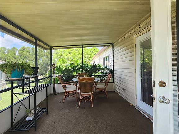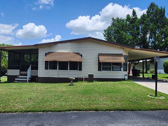 Welcome to this beautiful well maintained 2/2 retreat! Completely furnished this home is ready for you! The kitchen offers ample storage for all your cooking needs! On either side of the kitchen you will find not one but two dining areas each opening up to a large family room. Beautiful double french doors lead to the sunroom overlooking your front yard. At the end of the hall you will find that your laundry room is inside! You can also close this area off with a interior screened door. Across from your laundry room is an oversized extra bedroom. Walk-in closet and access to the hall bathroom! This bathroom is a full bath. The hallway leads to an open master bedroom. Double sliding glass doors open to a full walk through closet. The master bath offers built in storage, full vanity and a separate walk-in shower! The exterior of the home offers a storage room under the carport as well as a second one located at the rear of the property. Great for hobbies! Located in the very desirable 55+ Foxwood Village, a Spectrum Community with 250+ Channels and 4 mbps high speed internet. Foxwood Village is an active 55 community that is pet friendly and offers great amenities like: Clubhouse with too many Social Activities to mention, Dog Park, Exercise Room, Pickle Ball Court, Corn Hole, Putting Green, Firepit, Heated Pool, Tiki Huts, Rec Room, Hot Tub, Showers, Dry Sauna, Billiards/Game room, Security Cameras, Social Clubs! Conveniently located near shopping, restaurants, medical facilities and just a short drive to popular Florida attractions! Home sold 'As Is' without warranties or guarantees by seller and/or Broker. All listing information is deemed reliable but not guaranteed and should be independently verified through personal inspection and/or by appropriate professionals. The buyer assumes full responsibility for obtaining all current rates of lot rent, fees, or pass-on costs associated with the community, park, or home from the community/park manager.