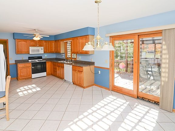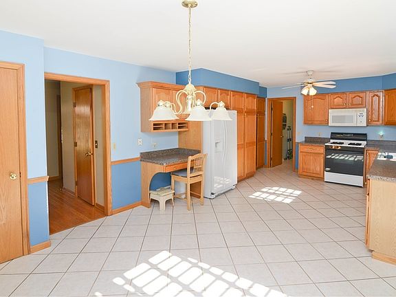 Wow, the landscaping on this is gorgeous, from the front yard to the back! Meticulously maintained exterior. The stamped entry walk takes you to the covered front porch and into the spacious hardwood entry foyer. Large carpeted family room with fireplace! There is a formal living room that could easily be your home office with glass french panel doors for peace and quiet. Roomy Eat in kitchen with ceramic flooring, great counter space a pantry and plenty of cabinets. Appliances to stay for new owner. Glass slider doors lead to the tranquil backyard oasis. First floor half bath and first floor laundry as well! Washer dryer to stay. The owner suite with private full bath. Double closets for you. Two additional bedrooms with great closet space! Full guest bath with double sinks and tub shower combo! Two large linen closets. The finished basement rec room is great for gatherings! Large utility room 23x12 storage room perfect to finished into a basement bedroom! If you are wishing for a fan
