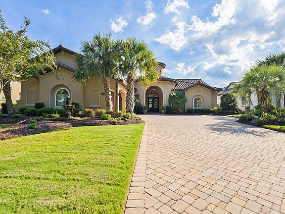 Rare opportunity in the Grande Dunes Members Club! This Mediterranean-style residence is located in the Members Club Cottages—one of the most exclusive enclaves in Grande Dunes—and is the only home offering a direct view of the 18th fairway. Just a three-minute walk to the Members Club itself, the location is unmatched for convenience, privacy, and lifestyle. Step through wrought iron entry doors into an expansive living area with immediate golf course views. The open floor plan blends formal and casual living with a private dining room, an open chef’s kitchen, and seamless indoor-outdoor connections. The kitchen is appointed with custom pull-out cabinetry, dual pantries, and abundant prep space, along with indoor and outdoor breakfast nooks. A coffered-ceiling office/den with closet offers flexible use for work or guest overflow. The primary suite is a true retreat, highlighted by marble flooring, an oversized jetted tub, and a dual, multi-head rain shower. Accordion glass doors open to a private covered lounge, creating a serene extension of the suite. Two additional guest bedrooms are connected by an oversized Jack-and-Jill bath, designed for comfort and privacy. The whole-home surround sound system, including the garage and outdoor living areas, allows for different music in every room, enhancing both relaxation and entertaining. Accordion glass doors extend to three separate outdoor living areas, each outfitted with powered screens and infrared heaters for year-round enjoyment. The outdoor kitchen is designed for gatherings, complete with a large cooking station, bar seating, dual refrigerators, and a sink. The resort-style outdoor space includes a heated, beach-entry saltwater pool with infinity edge overlooking the 18th fairway, spa, waterfall feature, and firepit seating area. The entire lanai and pool deck have been newly finished in travertine tile for timeless elegance. This home runs on natural gas throughout, powering the pool heater and multiple systems for efficiency and convenience. Professionally designed landscaping includes 21 palms that frame the property, while a self-watering fountain in the front yard sets a warm, welcoming tone each time you arrive. An oversized 2.5-car garage with epoxy flooring, built-in cabinetry, and abundant storage completes the property. All furnishings are optional, offering flexibility for a buyer to move right in or personalize the residence to their own taste. The original owners of this residence made sure every detail of this home included luxury craftsmanship both indoor and outdoor living. It is located in one of the most desirable golf course views in Grande Dunes—a rare chance to own in the Members Club Cottages, the most exclusive enclave of the community.