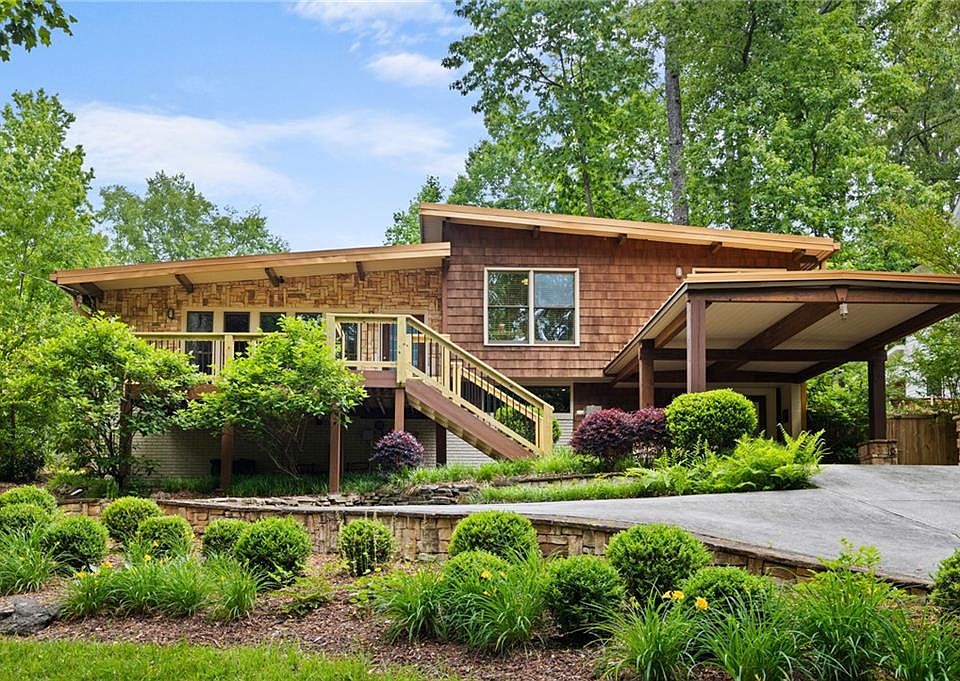 The Dyer house, a mid-century modern 4 bed and 3 bath home nestled in the heart of Brookhaven situated on a .30 acre professionally landscaped homesite. The iconic home features hardwood floors throughout, tongue-and-groove wood ceilings, exposed beams, Calacatta gold marble counters and floors. The clean lines with the function and form of this open floor plan has a timeless appeal as you make your way through the front door. Entering into the home you notice the blend or colors and patterns of this large living space with views into the kitchen and dining areas. The chef’s kitchen features updated stainless steel appliances, quartzite counters, breakfast bar, hammered copper farm sink and under-counter refrigerated wine/beverage coolers. Heading up the hallway you have two large secondary bedrooms with a private full bath. The primary en suite boasts a large closet, hardwood floors and private exterior access to the stunning backyard. The spa-like primary bath has double vanity with calacatta gold marble counters, separate beauty bar, natural stone tiled shower with frameless glass shower entrance and linen closet. The lower level of this mid-century home features a home office/workout/yoga room, additional large secondary bedroom with interior and exterior access, full private bath and large laundry room. Heading to the private fenced backyard feels like you are at a 5-star resort with the custom heated in-ground saltwater pool finished in PebbleTec Black Onyx with infinity edge waterfall. This huge backyard also features an elevated gazebo overlooking the pool and professionally landscaped backyard. Along the infinity edge waterfall boasts a covered patio with travertine floor perfect additional entertaining area off of the kitchen and dining area. Convenient to Sandy Springs, Buckhead, Downtown and minutes to some of the best food and shopping in Atlanta.