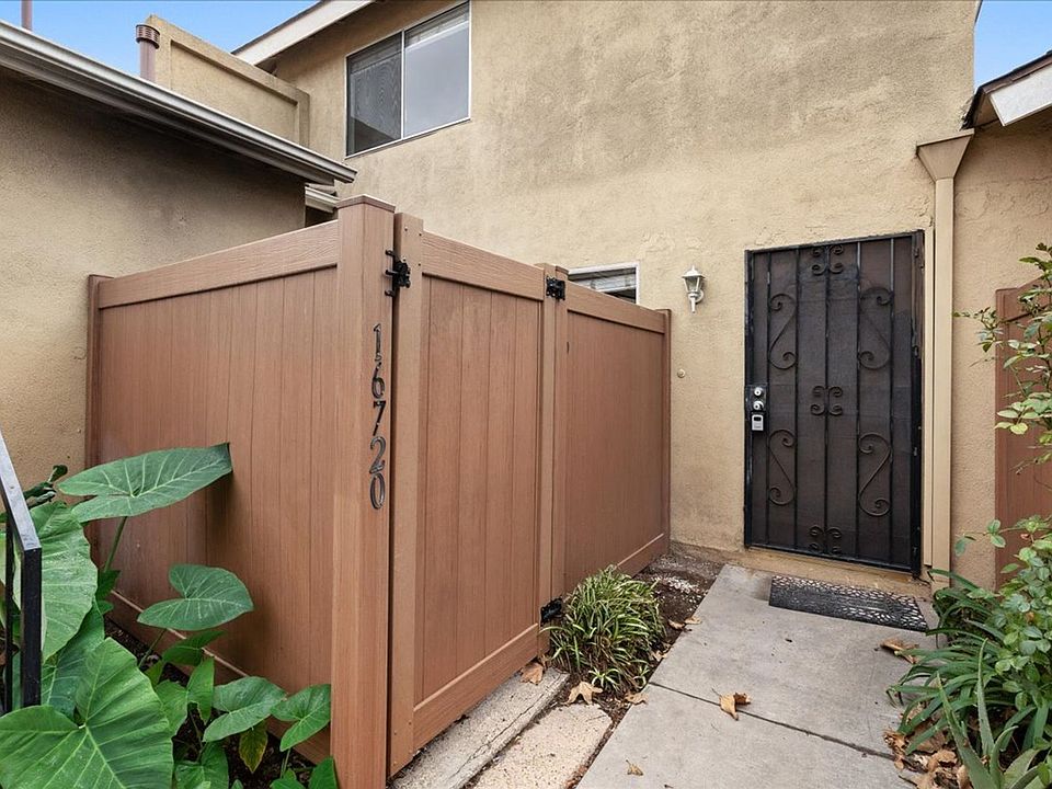 Updated two-story Cerritos Villas townhome in one of the area's most desirable communities. The updated kitchen features white cabinets, granite countertops, and stainless steel appliances. Downstairs, you'll find plank floors and an open living and dining area adjacent to a private patio. Upstairs are two bright bedrooms and a full bath, including a spacious primary with an XL closet. The unit features central HVAC, one-car garage, and an additional assigned parking space. Don't miss your chance to view your new home tucked into this quiet, tree-lined community.