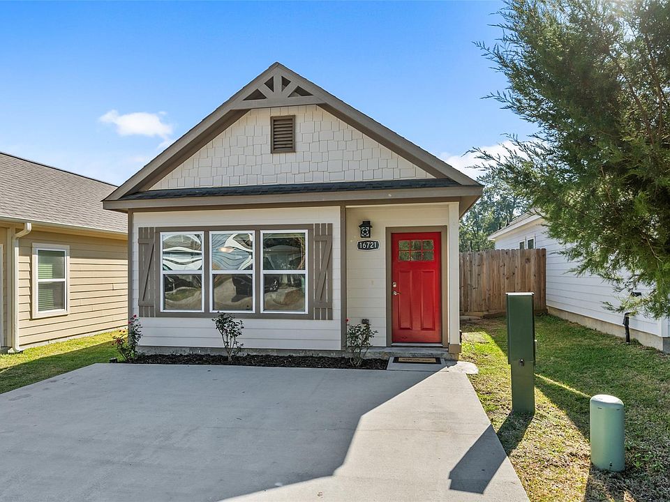 Fall in love with this charming 3-bedroom, 2-bath home in Lake Conroe Village featuring a light-filled family room upon entry with beautiful windows and an open floor plan. The home offers a blend of durable vinyl and soft carpet flooring throughout, creating both style and comfort. The lovely kitchen is equipped with granite counters, tile backsplash, stainless steel appliances, ample cabinetry, pantry and a breakfast bar that flows effortlessly into the family room - perfect for everyday living or entertaining. The en-suite primary bedroom offers dual sinks, granite counters and a spacious walk-in closet, providing both comfort and convenience. The home also includes a convenient utility room, 2 parking spaces and a fenced backyard for your outdoor enjoyment. Stylish, cozy and perfectly located near all the fun, dining and shopping of Lake Conroe - this one truly feels like home.