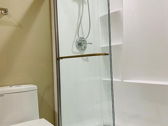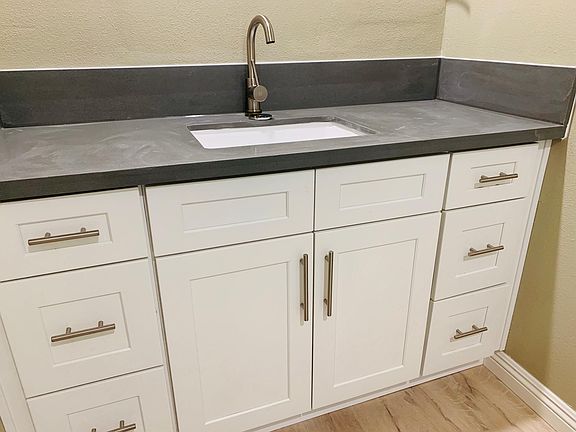 - Shaker cabinets with quartz counter, backsplash and under cabinet LED