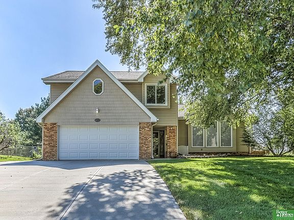 Move in ready & pre-inspected home in Millard with fresh paint, new carpet & flooring throughout! Step into a welcoming entry that leads to a remodeled eat in kitchen with eye-catching beams, pantry and lots of cabinet space. Off the kitchen is an additional dining area and living room w/ large windows. Also on the main level is an inviting family room with cozy fireplace and built ins, perfect for movie nights or game days. Convenient main floor laundry and 1/2 bath. Upstairs are 4 spacious bedrooms including a primary with 2 closets and 3/4 bath. Vaulted ceilings throughout enhance the open feel, while outside you will love the fully fenced back yard with tranquil pond and paver patio. The finished lower level expands your living space perfect for in home gym, gaming room or hobby space. All appliances included, just move in!! AMA