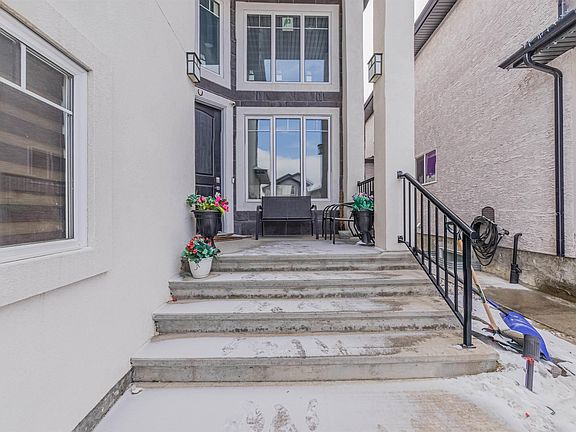 Custom-built Mcconachie treasure 5 bed, 4 full bath, 2546 sqft home designed for functionality! Step into a grand foyer w/ soaring double-height windows & an open-to-below design. Throughout, find beautiful millwork, including coffered ceilings, custom wall detailing, built-in cabinetry & panelled accents. The main floor boasts a dining room, two living areas—one w/ a NG fireplace—flowing into a chef’s kitchen w/ espresso cabinetry, glass inserts, granite countertops & large island. Patio doors open to a spacious deck & fenced yard. A main-floor bedroom w/ custom wall detailing & full 4-piece bath is perfect for guests or multi-generational living. Upstairs is a dream for large families, featuring versatile loft/bonus area & 4 spacious bedrooms all w/ walk-in closets. Primary suite impresses w/ dual walk-in closets & 5-piece ensuite w/ a soaker tub, dual sinks & a walk-in shower. Second bedroom w/ its own 4-piece ensuite offers added privacy & convenience. All this + separate basement side entrance!