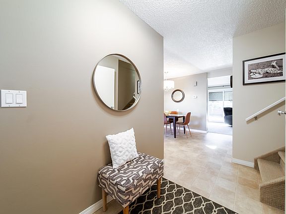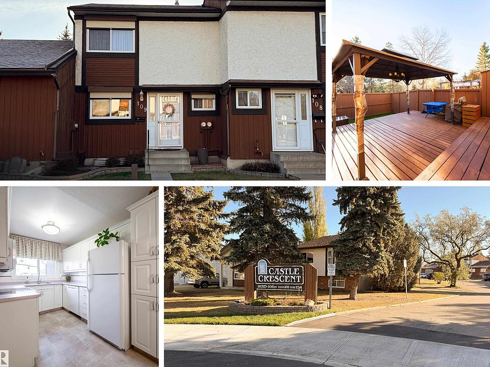 Fall in love with this beautifully maintained 3-bedroom townhouse. Whether you're starting out, growing your family, or downsizing, this home is a must-see. The main floor is warm and inviting with a white kitchen, a spacious dining area for hosting dinners, and a bright living room that looks out onto your private backyard retreat. Upstairs, enjoy three generous bedrooms and a full bathroom, offering plenty of space to unwind, work, or grow. The fully finished basement adds even more value with a cozy rec room, a perfect home office or hobby area, laundry room, mechanical space, and loads of storage. Step into your backyard dream featuring a massive two-tiered deck, a stylish gazebo, and lush golf green turf. It’s a low-maintenance paradise made for entertaining, relaxing, or letting the kids and pets play. With two parking stalls right outside your door, a quiet cul-de-sac location, and a private, treed backdrop, this home has it all. Just minutes to 97 Street, the Henday, schools, shopping, and more.