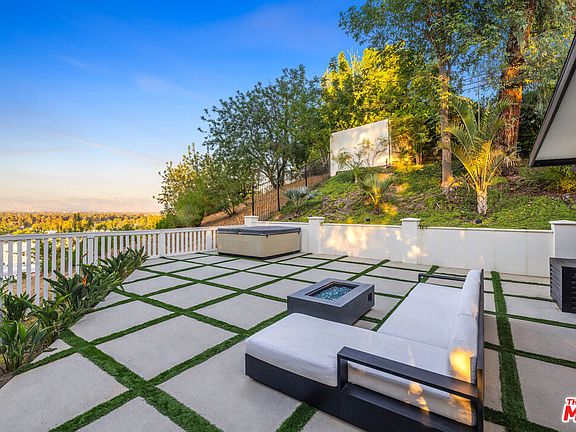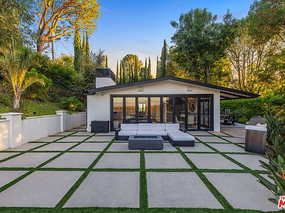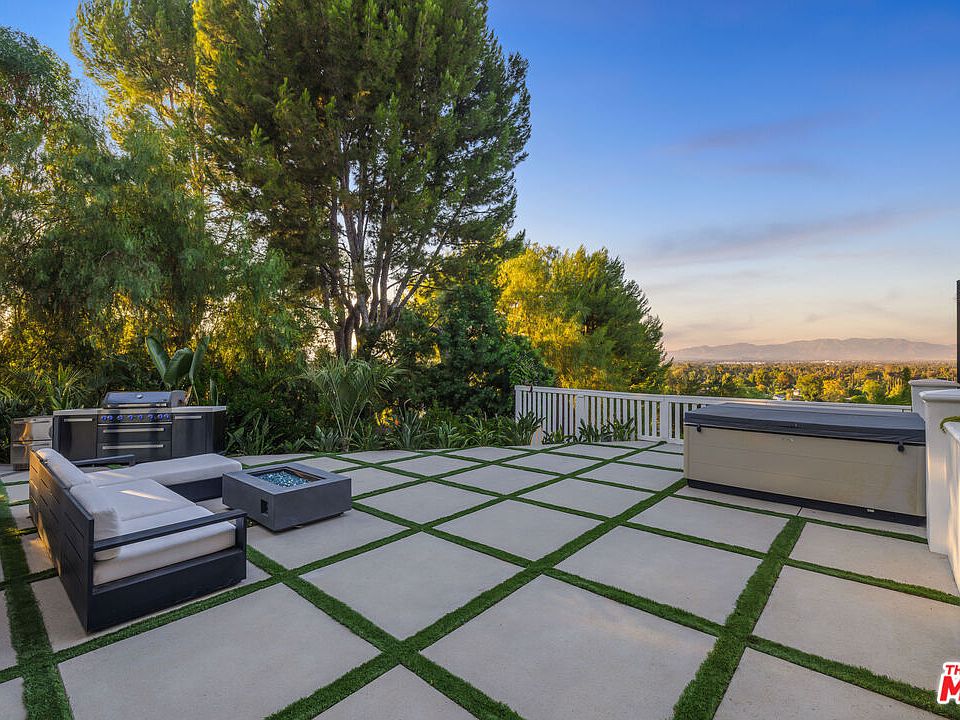 Nestled in the coveted Encino Hills, south of Ventura Blvd, this fully furnished, single-story contemporary retreat blends privacy, modern comfort, and effortless living. Situated at the end of a semi-private driveway and surrounded by mature trees, the home offers tranquil seclusion while remaining just minutes from the vibrant energy of the valley below. An open floor plan connects the living spaces to the backyard, with bi-folding glass doors creating a seamless indoor-outdoor flow. The spacious living room features vaulted ceilings and a fireplace that opens to the dining area and chef's kitchen. Natural light floods the interior, highlighting the rich wood floors and creating a warm, inviting ambiance throughout. The home offers three bedrooms, including a primary suite with a cedar-lined walk-in closet and a beautifully appointed en-suite bath. A versatile bonus room adds flexibility - ideal for a home office, gym, or media lounge. Multiple outdoor areas include a spacious dining patio along with zones for entertaining, a hot tub, and a fire pit - all perfectly positioned for sunset views or stargazing. Recently renovated, the home features updated electrical, plumbing, HVAC systems, and new windows with custom wood shutters, ensuring both efficiency and style. Additional highlights include motorized blackout blinds, a 6 speaker built-in Sonos system that extends into the backyard, motorized skylights, exterior security cameras with a full security system, and high-quality furniture from Arhaus and Restoration Hardware - making this home truly turnkey. Weekly landscaping and spa maintenance is included in the rent along with internet service and an eero mesh wifi network. Conveniently located near top-rated schools, with easy Westside access and proximity to shopping, dining, and Equinox, this hillside oasis offers the perfect balance of luxury, comfort, and convenience.