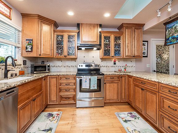 Stunning rock fireplacePeaceful backyard deckBreakfast barRecently remodeled laundry roomGranite countertopsHot tubPergola-covered patio