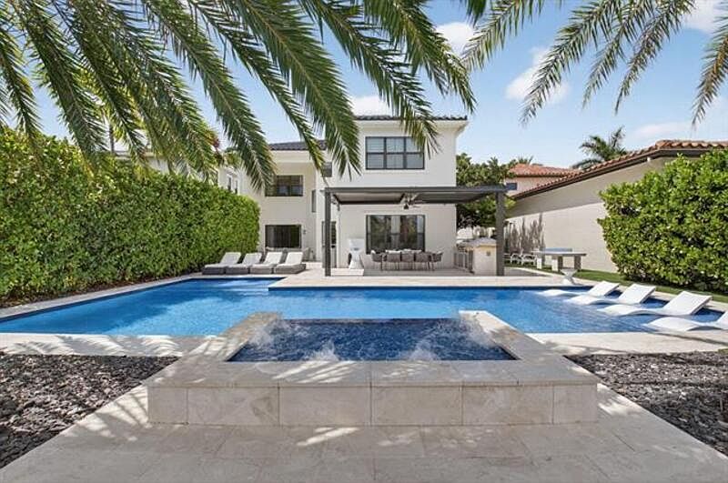This designer-decorated model home is now available for rent. Situated on a premium lake front lot, fully furnished & turnkey. Featuring 5 spacious bedrooms, 5 luxurious bathrooms, a dedicated office & a large loft, this home is thoughtfully designed for both entertaining & everyday living. This impeccably maintained residence offers the perfect blend of elegance & comfort. Step outside to your private paradise-an unbelievable backyard with a resort-style pool, spa, & summer kitchen, surrounded by lush landscaping, a serene lake & stylish outdoor furnishings. Located in the prestigious Seven Bridges community, residents enjoy world-class amenities including a luxury clubhouse, dining, fitness center, tennis, pickleball, & more all in one of Boca Raton's most sought-after enclaves.