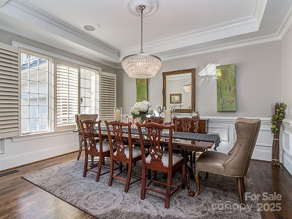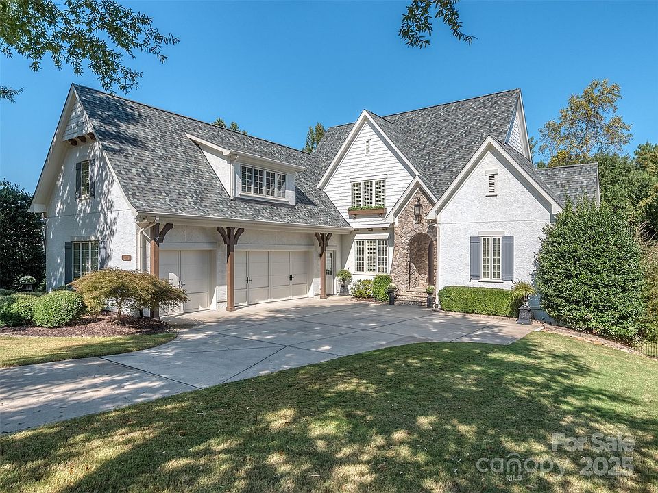 Welcome to The Palisades. This amazing Championship Golf Community is situated conveniently on the South Side of Charlotte and is flanked by Lake Wylie which straddles the North & South Carolina State Lines. Ashton Oaks, is the premiere gated section of The Palisades and backs up to the French Inspired Palisades Country Club and Club House. This French Provincial Styled Home has been completely updated from tip to tail! There has been no stone left unturned. You will see as you pull into the courtyard style parking area that the home has had the complete exteriors painted. The foyer welcomes you into this executive estate with all new site finished hardwood floors and is open to formal dining room and den. The dining room has smooth arched ceilings, chair rail, crown molding, and custom plantation blinds. The den features coffered ceiling, box bay window, cast stone see through gas log fireplace, and access to the covered rear porch. The gourmet kitchen has Honed Carrera Marble countertops, huge island, built-in KitchenAid Fridge, Wolf Gas Range/Oven, Subway Tile Backsplash, New White Cabinets, and more! Added features are the walk-in pantry, butler's pantry, and large private laundry. The main floor primary has vaulted ceiling, new site finished hardwood flooring, plantation blinds, recessed lighting, and crown molding. The primary bath has tile floor, custom vanity with storage tower, soaking tub, and walk-in shower. The 2nd floor features 3 spacious guest rooms all with site finished hardwood flooring and 2 large guest baths as well as a large bonus room and 2nd floor home office. Plantation blinds adorn all of the 2nd floor windows as well. The basement is designed with entertaining in mind! With 2nd kitchen/bar, large great room, and huge den/study with stacked stone see through gas log fireplace, you will never run out of room to gather! The basement also features a guest room with a full bathroom that is perfect for a large home gym! The dual covered rear porches overlook the treed areas between the home and the Palisades Country Club! Gated community entry ensures privacy & security! Take a quick golf cart ride to the club and enjoy all that membership has to offer! Schedule a tour to see this amazing home today!