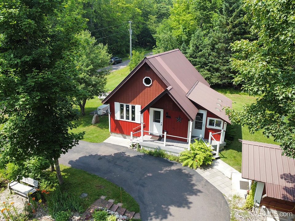 Enjoy the peace and quiet of country living with this charming 1 bedroom 1 bathroom home nestled on 3 acres of land. This cozy home features an open concept with a kitchen, living room, bathroom and bedroom on the first floor and an open loft area on the second floor that could be easily converted into a second bedroom. The primary bedroom includes a generous walk-in closet that would be suitable for a home office. The property includes a beautiful outdoor sauna, a stand-alone bunk house for guests, a shed that can easily accommodate a large riding lawn mower and a large two car garage complete with a woodshop and large loft area for extra storage. This home is situated on a peaceful gravel road just 30 minutes south of Houghton perfect for someone who enjoys the rural lifestyle or is looking for a weekend getaway! This property is being sold "as is" with all personal property remaining.