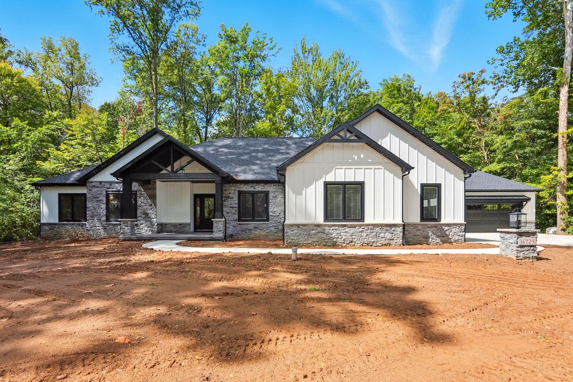 Gas fireplaceWooded backdropCovered front porchWet barQuartz countertopsMain bedroom ensuiteWalk in tile shower