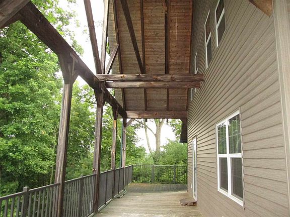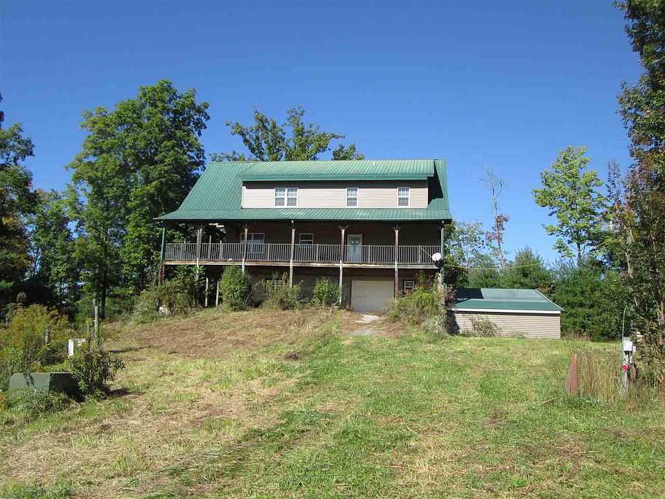 Soak up the mountain views as you relax on the massive wrap-a-round porches w/quality railing of this 2-story country home w/basement on 19.13 acres. It was custom built by the owner who chose tongue & groove ceilings, greystone fireplace in living room, kitchen cabinets aplenty, appliances, an elevator for the 2 upper levels, full unfinished basement w/1-car garage, a detached 20'x30' garage w/3 bays (1 tall) & workshop, extra plumbing for 2 half baths, fencing, and so much more. This dream needs a little TLC.
