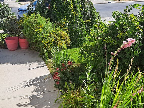 Wood flooringLvp flooringGarden grow boxesMature treesLarge islandFruit treesStainless steel appliances