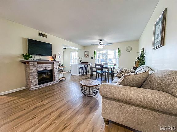 Welcome home to this move-in ready 1-bedroom, 1-bathroom main-floor condo in the quiet and well-maintained Parc Lorraine community! From the moment you step inside, you’ll love the open floor plan and thoughtful updates, including new luxury vinyl flooring and neutral paint throughout. Natural light fills the space, creating a bright and inviting atmosphere. The oversized living room and dining area are perfect for both relaxing or entertaining guests. The updated kitchen features newer appliances, butcher block countertops, a stylish backsplash and plenty of cabinet space. All appliances including refrigerator, stove, dishwasher, and microwave are included in the sale for your convenience. The bathroom is clean and refreshed with a custom accent wall, new vanity, new toilet, and a shower/tub combo. Enjoy effortless indoor-outdoor living with direct access to your private spacious patio from both the kitchen and the bedroom. Storage is no issue here, with large closets lining the hallway and bedroom, plus an additional storage unit upstairs. Enjoy the comfort of one-level living with convenient main-floor laundry just steps from your front door. Spend your summer days relaxing by the large community pool or hosting gatherings at the on-site clubhouse. This unit also includes a dedicated parking space, ample guest parking, updated electrical, and a brand-new roof coming soon. Water and trash are included in the HOA fee. All-electric unit for easy, low-maintenance living. Prime location in the heart of South County just minutes from Jefferson Barracks Park, shopping centers, restaurants, schools and major highway access. Why rent when you can own this updated and well-kept condo for an unbeatable price? Ideal for first-time buyers, downsizers, or anyone seeking convenient and affordable living in a desirable location. Schedule your showing today before its too late!