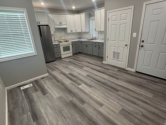 New kitchen cabinetsShared parking lotStainless steel fridgeForced heat and acOven and range topWasher and dryerPrivate back entrance