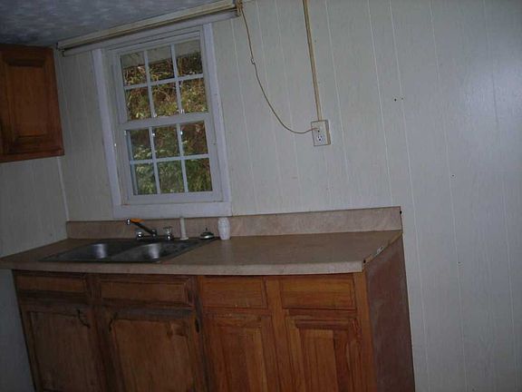 Exterior Features:This house is on a 5 acre lot. Curb appeal is nice. Siding is vinyl and in good condition. Roof is metal type in good condition. No parking available. Storage building present.Interior Features:This is a 2 bed 1 bath house with 768 sq ft. Flooring is carpet/ linoleum and in fair condition. The kitchen is intact with some damage to cabinet doors. Water heater present.