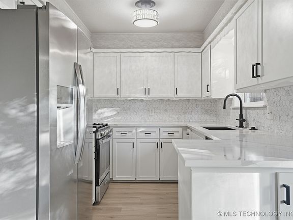 Beautifully updated 3-bedroom, 1-bath home in the highly sought-after Broken Arrow School District! This move-in ready property features a brand-new kitchen with quartz countertops, new cabinet doors, backsplash, sinks, and fixtures. Enjoy new luxury vinyl plank flooring throughout with fresh carpet in the bedrooms, plus new interior and exterior paint for a clean, modern look. Additional upgrades include new gutters, fresh sod in the backyard, updated landscaping, a brand-new furnace and AC system, and a new water heater. Stainless steel refrigerator and range are included—making this home truly turnkey and ready for its next owner!