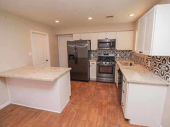 This beautiful 3 bed & 2 bath townhome was remodeled in 2018 including new windows and A/C. Inside you will find wood look tile flooring thru-out, vaulted ceilings, can lighting & more! The large living room has a cozy fireplace & slider door to the fully fenced backyard w/ covered patio! The kitchen layout is amazing w/good cabinet space, granite counters, black stainless appliances & combo laundry/pantry room! The bathrooms have granite counters, gorgeous vanities, updated lighting & more! This wont last!