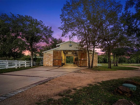 10+ ACRES of wide, open spaces & zoned to amazing CFISD schools make this Cypress estate ONE OF A KIND! Incredible barn w/ 6 horse stalls & lighted riding arena! Pool, outdoor kitchen & fireplace! Acres of beautiful green pastures & luxury treehouse! Truly something for everyone! Main house is 4 bedrooms, 2 full baths & 2 half baths + chef's kitchen, media room, hardwood floors throughout & garage w/ A/C workshop. Guest house has 2 beds, 3 full baths, plus kitchen, living/rec room, full pantry & laundry. Outdoor entertaining abounds w/ pool & spa, outdoor kitchen, stone fireplace, water feature wall, sport court & dry sauna w/ shower. Incredible, A/C warehouse is the perfect hangout or home office space w/ half bath, loft, rooftop patio & RV/boat storage. Stables feature A/C tack room, half bath, laundry & horse wash stall. Property features 4 fenced pastures, pond, chicken coop, natural gas generator. Peaceful & private, yet minutes from shopping/dining & quick access to Hwy 99 & 290.