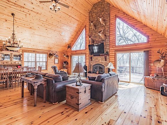 Over 583 acres of hunting paradise, affectionately known as Turkey Ridge. Just 15-20 minutes from Bentonville, you won't find this many acres this close to town anywhere else. Gated entry and paved road access. The 1,848 Square Foot lodge has 3 bedrooms and 3 full baths, a beautiful open kitchen and bar, Meat hanging walk-in cooler, and a full wrap around deck. 16x16 Outdoor Kitchen pavilion with wood fireplace. Covered parking for 2+cars. AND a 30x40 wooden barn/shop. Greater property features several active springs providing year round live water. Expansive road system not usually seen on hunting land - Easily drive a 4WD vehicle throughout the property (see attached map and photos). Lots of frontage on Kelly Pond Rd.