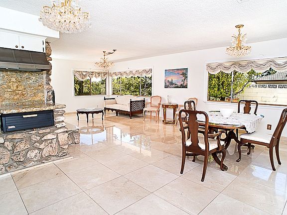 This very large and private custom made home is a prime example of prestigious Knollwood Country Club Estates. Perched high up on a knoll and up a long private driveway, this home overlooks Knollwood Drive. The custom design and architecture flow throughout with an open floor plan and plenty of natural light from every window. For a large family or anyone who loves to entertain large groups, this is the right home. The master bedroom with private bath is located upstairs and has a private balcony that overlooks the sparkling pool and large patio area. There are four bedrooms each with its own private bathroom downstairs. One bedroom would be a perfect office. There is an updated kitchen with granite counters and updated appliances, living room, family room, two cozy fireplaces, and views of the valley from upstairs. Central AC/Ht. Large tile floors throughout. Fresh interior paint. Sparkling swimming pool and covered patio. For car enthusiasts the two car garage offers a unique 'car pit' to work underneath vehicles. The long driveway winds up to the entry where you will find a large front yard with plenty of extra parking while entertaining friends and family. Mature palm trees and lush landscaping surround the large 17,500 SF lot. This is a warm and comfortable home waiting for a family to enjoy and live in for many years. Come and visit this beautiful custom Knollwood Country Club estate.