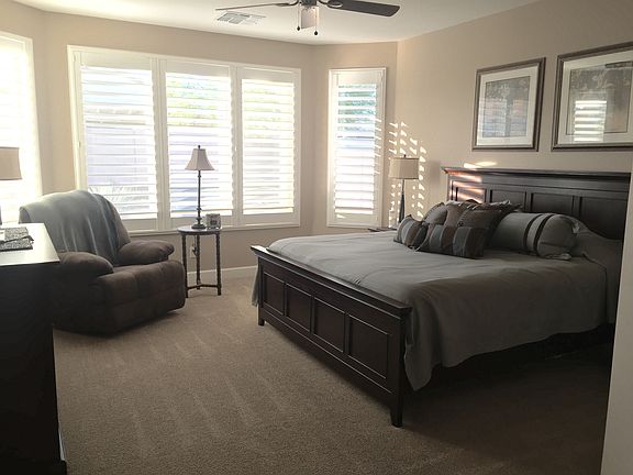 This home is better than new! Used by snowbirds for only four winters. Third bedroom can be used as your den. It has over $56k in upgrades including extended master bedroom, 4ft garage extension, water softener, two-tone and custom paint, custom faucets, euro shower door in master, 5 3/4" mitered baseboards, upgraded granite, Quartz vanities and tile shower surrounds in bathrooms, gas range, upgraded cabinets, full tile backsplash, above and under cabinet lighting in kitchen, upgraded tile and carpet, clear-view plantation shutters throughout, extended patio.