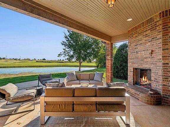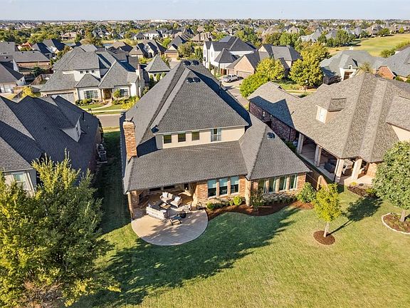 Situated on Hole #12, this beautiful home is directly on the water providing incredible views all day long! Enjoy beautiful sunsets reflecting off of the water, golfers teeing off from a distance and calm waters perfect for fishing in your backyard and nature watching! This home is so inviting with a vaulted entry nearly 20ft tall and Immediate golf and water views from the moment you enter! Designer handscraped wood floors throughout the main areas downstairs as well as the staircase and upstairs landing! Large living room with a stone gas fireplace is open to the kitchen and oversized breakfast/dining room! A Private study with glass doors provides separation! Large pantry and dry bar with archways creates a wonderful hosting space! Large Laundry tons of countertop space and storage with an adjacent mudroom storage space for shoes, jackets, backpacks, etc..! The primary suite is HUGE with picture windows overlooking the water and golf course, includes a large bathroom with separate shower and tub, 2 vanities and private toilet! Walk in closet includes tons of hanging racks and built in drawers with a power outlet perfect for your watch winder! Guest suite downstairs with en suite! Upstairs includes a big playroom with tons of natural light, full bedroom with views of the golf course and a full bathroom! PLUS, a huge walk in floored attic large enough to easily finish out a 4th bedroom, movie room or golf simulator!! Fresh landscaping, 3 car garage and a brand new AC Unit! What more could you ask for! Rose Creek is a gated community with 24/7 security personnel and includes a neighborhood pool and fitness center! And the biggest bonus is golf cart access to OKC's best restaurant, Neighborhood Provisions!! Contact the listing agent for a private showing today!