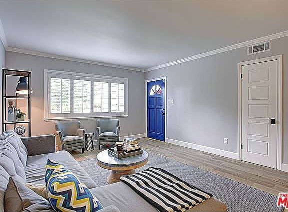 Wonderful opportunity to own this beautifully remodeled Granada Hills home. As you enter the front door you begin to notice details that makes this home beautiful and functional. Large living area welcomes you with calming grey/blue tones of custom paint throughout. Home features crown molding, Grey washed hardwood floors, smooth ceilings, plenty of natural light and the option to make private with plantain shutters throughout. The kitchen is perfect for entertaining, featuring a large formal dining area with beautiful natural slate tiles, apron front kitchen sink with new kitchen cabinets,range, stainless steel hood with removable/washable baffles,double oven, and large pantry with washer and dryer room combined. Wainscoting walls and custom light fixtures bring out the modern yet cozy feel. Pair that feeling with a cozy fireplace in the family room and enjoy your evenings in style and comfort. The backyard invites summer gathering with plenty of space for entertaining or pets.