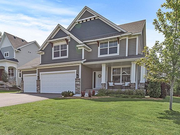 Gorgeous 5 bed 4 bath home in a highly desirable luxury development in Plymouth! The open layout main level with beautiful hardwood floors and high-end finishes has the living room with gas fireplace, dining, kitchen with walk-in pantry, den/office/flex room, powder bath, and mudroom. The upper level has the primary suite with a spacious walk-in closet and private bath, 3 more bedrooms, and laundry room. The lower level includes the 5th bedroom, 3/4 bath, and family room with wet bar and gas fireplace. Large yard. Home is move-in ready with fresh paint! You won't be disappointed in this wonderfully cared for home! Wayzata schools!