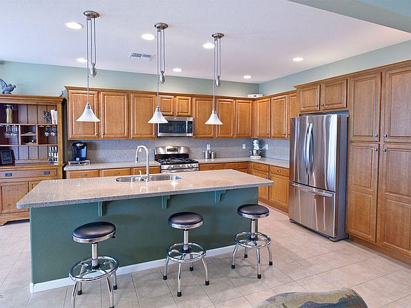 COMPARE PRICING TO NEW! Base price does not include: upgrades, lot premium, window treatments, lighting or landscaping. This home is ready for you to move in now & enjoy the resort lifestyle without the hassle & wait of starting a new home from scratch. Pristine condition, great open floor plan offering 2 bedrooms with en suite baths, master bedroom with bay window & spacious walk-in closet, den w/double doors, engineered stone counters tops with full back splash in Kitchen, roll out shelving, Stainless Steel appliances, gas range & convection oven, laundry room with additional cabinets & counter space, custom master closet organization system. Solar equals Low Electric Bills! Extended covered patio; perfect for entertaining! OFFERED BELOW APPRAISED VALUE! Ready for you to enjoy!