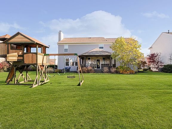 Welcome to this impeccably maintained, 4-bedroom home in the popular Countryside neighborhood featuring an amazing outdoor space you will love with a covered deck, paver patio with firepit, and invisible fence. Two-story entry welcomes you into this open and airy floorplan with an updated Kitchen with center island, pantry, eating area and lots of cabinet space with custom pull outs. Great room has a cozy fireplace surrounded by beautiful built-ins, office/flex space with French doors for added privacy, formal dining room, and a spacious laundry area with extra storage complete the main level. Upstairs are 3 spacious bedrooms, full hall bath with double sinks, and a large primary suite with updated spa-like bath and a custom closet. Finished basement is the perfect entertaining space with bar-top seating, half bath and lots of extra storage space. Enjoy the many neighborhood amenities including a clubhouse, pool, tennis/pickleball courts, walking trails, and playgrounds.