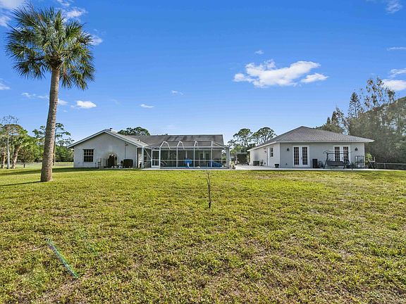 This stunning 4-bedroom, 2.5-bathroom pool main home offers a perfect blend of luxury and functionality, complete with a 2-car attached garage and an impressive 1,800-square-foot detached air-conditioned 4 building featuring a full bathroom. With 4,200 square feet of air-conditioned space, this property is designed to accommodate all your needs. The main home spans 2,400 square feet and boasts a chef's dream kitchen with 42-inch wood cabinets, granite countertops, stainless steel appliances, and a skylight that fills the space with natural light. Gorgeous tile flooring flows throughout the home, complemented by updated bathrooms, a cozy fireplace, and elegant French doors that lead to a spacious screened patio and sparkling pool. Sitting on a sprawling 1.47-acre fully fenced property, this home is designed for privacy and convenience, with two entrances, including an electric gate and pedestrian access. The backyard is a true paradise, offering ample space for outdoor activities without the worry of a pond. Whether you're hosting poolside gatherings or relaxing in the tranquility of your lush surroundings, this property offers endless opportunities. The detached building is a game-changer, complete with its own air conditioning and separate electric meter, making it ideal for a guest house, workshop, storage, or even a home business. There's plenty of room to park your boat, RV, or other recreational vehicles, adding even more versatility to this exceptional property.