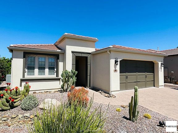 Living in this inviting St. Tropez home in Encanterra with its large array of amenities,feels like an endless vacation. The resort-style community feature two GORGEOUS Clubs available to resident members. La Casa,with approximately 60,000 sqft of indoor and outdoor areas,is a social haven for discovering new interests,clubs,and friendships. The second clubhouse,The Algarve provides a tranquil 8,000-square-foot oasis for relaxation,and refreshment,both inside and out. This alluring home offers an exceptional opportunity,featuring a freshly painted exterior and beautifully manicured landscaping. The broadened paver driveway adds a touch of elegance to the home's approach. A spacious north-facing backyard boasts an extended paved patio around an almost grove-like area filled