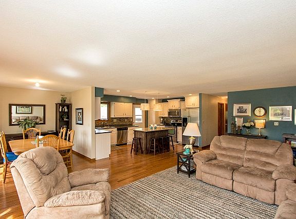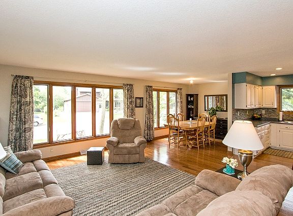 Warm and inviting split level in a fabulous neighborhood, cul-de-sac type setting! Updated kitchen, beautiful HW floors in recently created open concept main floor. 3 bdrs on one level, two in LL w/egress windows. Extra 3 season porch/rec room, nice mud room area from garage! The back yard is totally fenced, private and even room for a garden and some chickens! Come see this lovely home & walk onto the golf course across the street for a round!