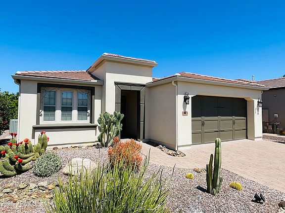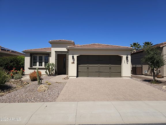 Living in this inviting St. Tropez home in Encanterra with its large array of amenities, feels like an endless vacation. The resort-style community feature two GORGEOUS Clubs available to resident members. La Casa, with approximately 60,000 sqft of indoor and outdoor areas, is a social haven for discovering new interests, clubs, and friendships. The second clubhouse, The Algarve provides a tranquil 8,000-square-foot oasis for relaxation, and refreshment, both inside and out. This alluring home offers an exceptional opportunity, featuring a freshly painted exterior and beautifully manicured landscaping. The broadened paver driveway adds a touch of elegance to the home's approach. A spacious north-facing backyard boasts an extended paved patio around an almost grove-like area filled