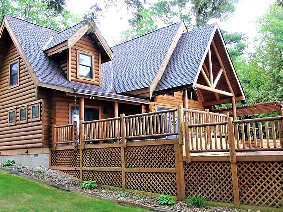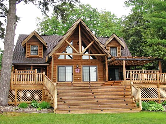 STUNNING HIGH END LOG HOME WITH 114 FEET ON BEAUTIFUL LAKE MARGRETHE WITH SANDY BEACH FRONT AND BEAUTIFUL SUNSETS! THIS MAGNIFICENT LOG HOME WAS DESIGNED FOR ENTERTAINING FAMILY AND FRIENDS. 3 BEDROOMS, 3 BATHS, EXTENSIVE CEDAR DECKING, 3 COVERED PORCHES WITH HOT TUB(SEATS 8-9 PERSON) AND LARGE PERGOLA. 15 x 30 BRICK PAVER PATIO WITH FIRE PIT AREA AND PERGOLA AT LAKE. HOME WAS BUILT IN 2010 OFFERING 2190 SQUARE FEET OF OPEN FLOOR PLAN WITH CATHEDRAL CEILINGS AND LOTS OF NATURAL LIGHTING. 4 DOOR WALLS WALK OUT UNTO EXTENSIVE CEDAR DECKING. MASTER SUITE WITH PRIVATE JACUZZI TUB AND GRANITE DOUBLE SINK, WALK IN CLOSET, HEATED STONE TILED FLOORS WITH SEPARATE SHOWER, WALKS OUT ONTO DECK WITH HOT TUB.
