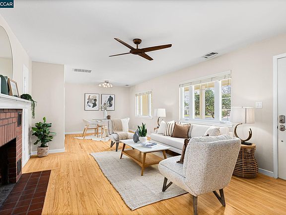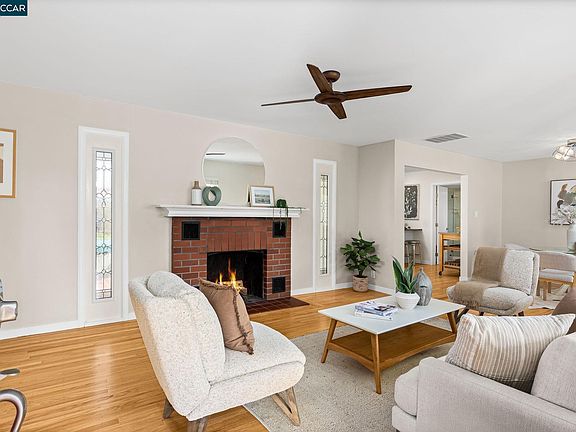 Beautifully updated and maintained single story rancher on a premium, flat lot! Step inside and admire the real hardwood flooring that flows through most of the home. A spacious living/dining room area offers a brick, wood burning fireplace with sidelight windows and designer ceiling fan. Fall in love with the updated kitchen featuring updated shaker cabinetry, dramatic granite counters, recessed lighting, bar seating area, stainless appliances with dual fuel Italian stove, and large pantry area. The tastefully updated hall bathroom boasts tile flooring, tile shower over tub, glass enclosure, solid surface counter top, and linen closet. A convenient second full bathroom has marble flooring, granite counter, and solid surface stall shower. Step out back to a sprawling, flat yard with large patio areas, trees, and hot tub. Other features include: Fresh exterior paint, central HVAC, updated Anderson windows, laundry in garage, paver gated side yard, plus updated electrical panel and copper water pipes. Conveniently located to BART, HWY 4 access, shopping, schools, restaurants, and more! Mount Diablo School District.