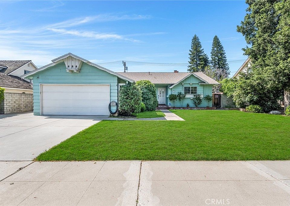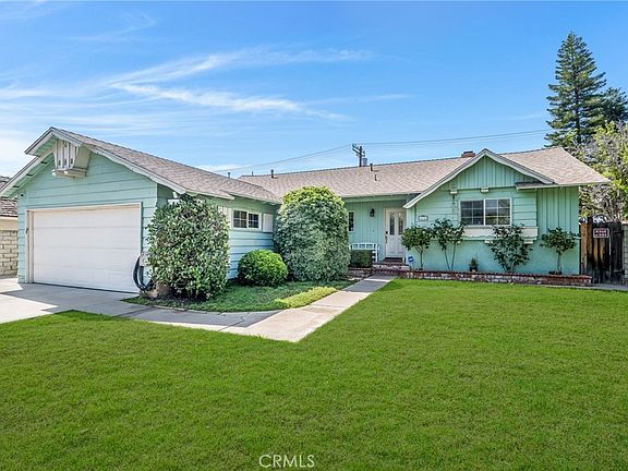 PRIME LOCATION!!! Located in a desirable, North of Rinaldi neighborhood this adorable 4 bedroom, 2 bathroom single story home is READY to be called YOURS!!! Offering over 1500 sq. ft. of comfortable living space on a nice 7,525 sq. ft. flat lot with attached 2 car garage, and a large driveway for extra parking of a possible 3 additional vehicles. The charming brick front porch greets you as you entry into this light filled home, highlighted by central air & heat, newer roof and water heater, smooth ceilings, wood laminate flooring, crown moldings, dual pane windows and a cozy fireplace in the living room. A convenient dining area with sliding glass door to the rear yard is located off the cook’s kitchen with tile counters and built-in appliances, plus there is an indoor laundry area. Good sized primary suites boast his & her closets, and a shared full bath with tiled vanity and dual sinks. All the secondary bedrooms are ample sized and the 4th bedroom is currently used as a media room. A manicured rear yard offers great patio space, lush lawn, and a handy storage shed. This home is located just minutes from shopping, dining, Knollwood Country Club golf course and easy freeway access. See it today!