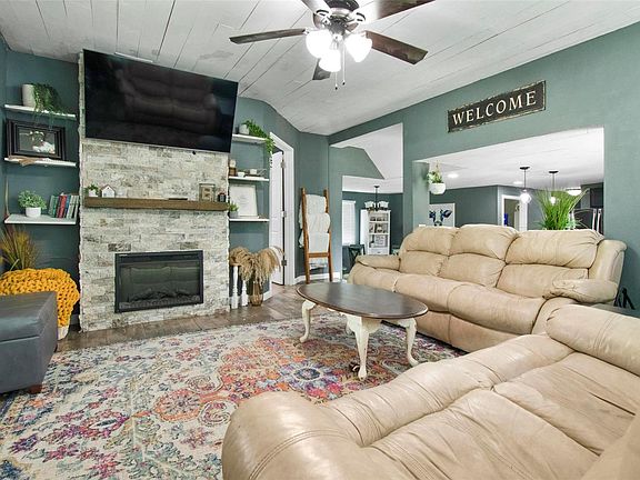 CHARMING 3 bedroom 2 bathroom home on 5 partially wooded acres with an expansive front yard. Stepping inside from the covered front porch, you'll instantly fall in love with how welcoming it feels. There is a unique shiplap ceiling treatment, stacked stone fireplace, wood floors & an open concept layout which has the living room open to the large kitchen & dining room area. There you will find a wonderful center island for extra prep space and seating, granite countertops, beautiful light fixtures & stainless steel appliances. The dining room easily accommodates seating for 6 & is great for entertaining. The master suite boasts an updated bath with custom walk in shower and beautiful tile floors. Home has a new HVAC system, new septic system and many other improvements & updates. This property gives you all of the country living feels with all of the conveniences of town being just minutes away. Located 4 minutes from exit 123 on I44 AND it's in the Lebanon School District!