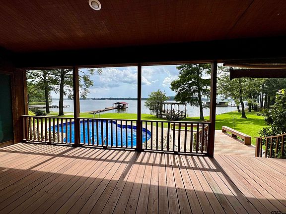 Lakefront Paradise on Lake Tyler – 1.3 Acres of Serenity Welcome to your own slice of lakeside heaven! Nestled on 1.3 beautifully wooded acres just a mile past The Petroleum Club, this 1,870 sq ft Lake Tyler retreat offers stunning views, unique features, and endless outdoor enjoyment. This charming 2-bedroom, 2-bathroom home features both bedrooms as private ensuites, offering comfort and privacy for you and your guests. Step into the expansive great room, where vaulted ceilings and a cozy wood-burning fireplace create an inviting space perfect for relaxing or entertaining, all framed by stunning lake views from every room! The open concept kitchen is fully equipped with custom solid wood cabinetry, stainless steel appliances (refrigerator INCLUDED!), and plenty of space to cook and gather around the two tiered island. Just off the stone-paved courtyard in front entry is a welcoming bonus living room with a wet bar that is perfect for entertaining or quiet evenings in. The spacious primary suite is a true retreat, complete with soaring ceilings, light wood paneling, a massive walk-in closet, and even a dedicated office nook. The main ensuite features a luxurious soaking Jacuzzi tub, separate shower, and a large laundry room with built-in cabinets and a utility sink just down the hall. Outside, the magic continues: a sparkling in ground pool, multiple decks for lounging and entertaining, a charming gazebo, a spacious covered patio, and your very own boat slip all with breathtaking views of Lake Tyler as your backdrop. BONUS: A BRAND NEW beautiful modern black shingle roof and matching black gutters are being installed soon! Don’t miss this rare opportunity to own a peaceful, private lakefront escape with all the amenities of a dream home. Call today to schedule your private showing!