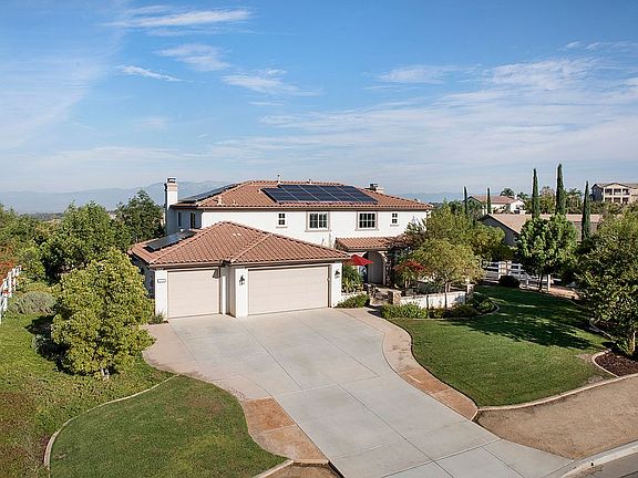 Beautiful, turnkey, 4 bedroom, 4.5 bath home located in Bridle Creek community of Riverside. This home features formal living with fireplace. Formal dining room. Separate family room with fireplace. Ceiling fans throughout. New interior paint. New hardwood floors. Gourmet kitchen has granite counter tops, center island with breakfast bar, double oven, tech desk, eating area and walk in pantry. Custom stone tile flooring. Great size bedrooms all with their own bathrooms. Downstairs bedroom and bath. Upstairs loft. Master suite has fireplace, dual mirrored walk in closets, master bath with oversized tub and built in vanity. Solar panels. 1 acre horse property with mountain and city lights view. 4 car tandem garage. Too many features to list. A must see. Don't miss out