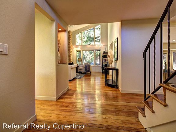Gorgeous Los Altos Home with Cupertino Schools - Take a look at this inviting 5 bedrooms + office and 3 full bathroom home! It offers plenty of natural light through the gorgeous large custom double pane Pella windows and provides great architectural details with vaulted ceilings and custom niches. The spacious floor plan offers an open living room and dining room combo with separate family room all with hardwood flooring. The large updated kitchen offers a center island, Caesar Stone counter top, stainless appliances, and eat-in breakfast area. All bathrooms have been upgrade with modern elegance and custom designs. The back yard is like paradise with beautiful waterfall and a natural fish pond. Plenty room for indoor and outdoor entertainment. Some of other amenities includes, skylights, 2 duct system central heating and air-conditioning, gas fireplaces, subzero refrigerator and freezer, whole house fan, Jacuzzi tub, custom lighting throughout, central vacuum, wall niches, garden lighting, paved driveway and walk ways, custom stamped concrete patios and many matured redwood trees. It has also been seismically updated! This home has it all, call to schedule a tour. SCHOOLS: Montclaire Elementary, Cupertino Middle, Homestead High. Gardening is included in the rent. 1 year lease required. No pets, no smoking please. (RLNE2778423)
